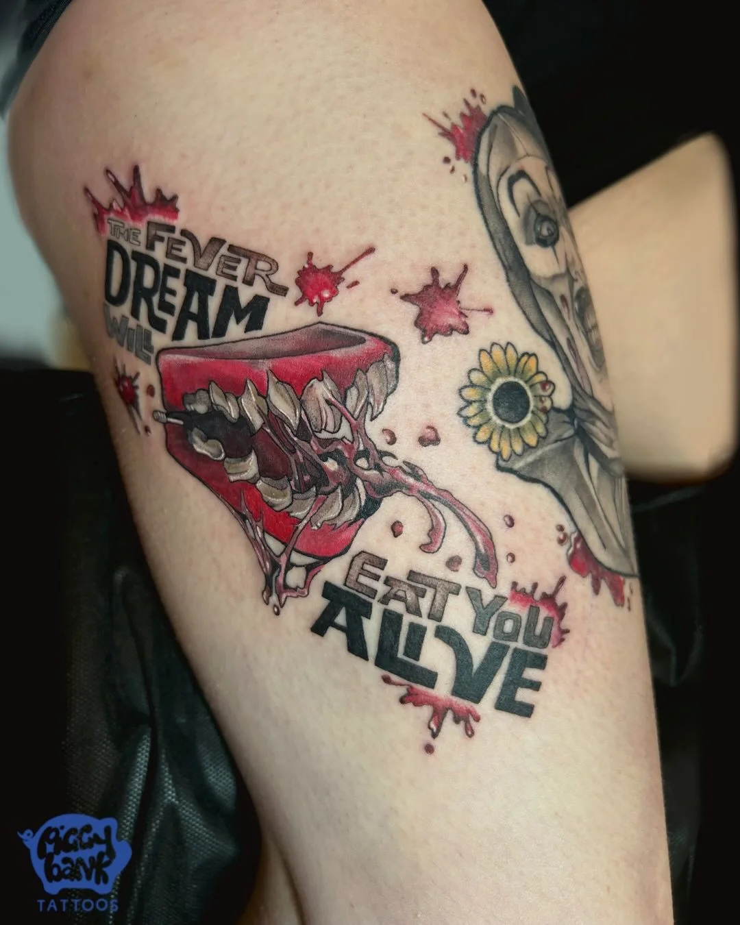 Now back in her hometown, Brenna has realized her dream of owning her own studio, and opened Piggy Bank Tattoos.